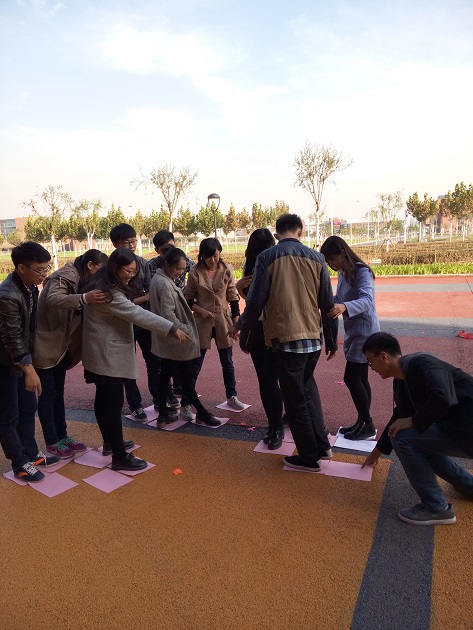 本次活动共有7个游戏环节,分别为背夹起球、踩气球、同舟共济、解手链、传染病、人体多米诺以及十人九足。首先由组织人员介绍每个游戏的规则,然后现场进行分组,每组4位同学,合作进行游戏。通过成员之间的团结协作与默契配合,各组进行激烈的追逐竞争。最终综合各环节成绩评出总分前三的三支队伍,并分发奖品。