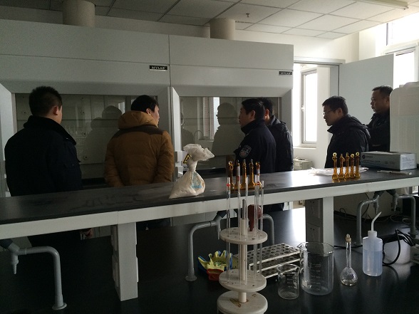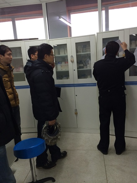 检查开始之前,公司实验设备处技术安全科科长张锐老师首先就公司安全管理制度、实行的系列措施向两位民警同志作了详细地介绍。随后,一行人先后参观了环境工程系实验室A409、环境污染过程与基准教育部重点实验室A370、环境监测和环境化学教学实验室A237、水处理教学实验室A118。民警同志对孙红文教授实验室、唐雪娇副教授实验室严格实行易制毒药品管理表示高度认可,希望公司都能按照这几个实验室做好实验室危险化学品储存和使用的管理工作。