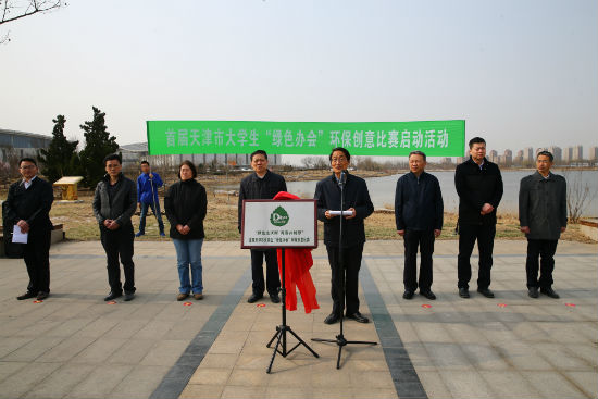 南开新闻网讯(记者 吴军辉 摄影报道)3月19日,“绿色达沃斯青春共创想”首届天津市老员工“绿色办会”环保创意比赛在2016夏季达沃斯论坛举办地梅江会展中心启动。大赛面向全市高校员工征集“绿色办会”的创意、建言,鼓励青年学子用青春创想助力“绿色达沃斯”。