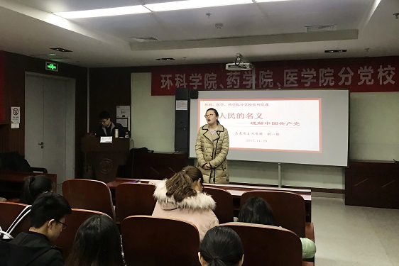 刘一博副书记首先以电视剧《人民的名义》中的经典片段引出本次党课的主题,并通过向同学们展示邱少云、黄继光及方志敏革命先烈们的光荣事迹,让大家感受、学习到了在战争年代老一辈共产党员为了人民不畏牺牲、甘于奉献、一心为人民服务的可贵精神。接着,刘一博副书记围绕“为什么要入党”这一问题进行阐释,帮助大家更进一步地思考入党的意义与责任。同时,刘一博副书记向大家介绍了其他国家共产党的发展历程,并与我国共产党的发展历程进行了对比,让大家深刻地认识到“没有中国共产党的领导,中华民族复兴只能沦为空想”。