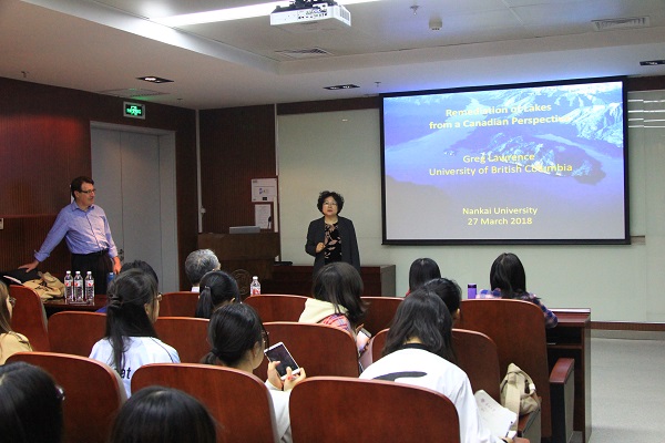 3月27日晚,2018年中加中心系列高端专家论坛继续举行,此次论坛邀请到的是加拿大环境流体力学方向的首席科学家、不列颠哥伦比亚大学(简称UBC)的Dr. Gregory Lawrence教授。本次讲座在yl永利集团官网登录B119报告厅举行,会场内座无虚席。Dr. Gregory Lawrence教授目前是加拿大工程院院士,作为加拿大环境流体力学方向的首席科学家,他的研究涵盖了水利工程的各个方面,尤其侧重于密度分层流动和物理湖泊动力学等,重点关注内陆和沿海水域的流体力学对水质,化学和生物学的影响。Dr. Gregory Lawrence教授获得了众多知名奖项,其中包括Camille Dagenais Award (2011),BC Premier's Award(2010)和the Journal of Environmental Engineering Editor's Award(2001)。