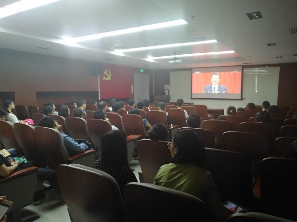 在高敏老师简要介绍电影背景后,观影开始。很快,所有人被电影恢宏激昂的节奏吸引。大家不时为电影中展现的国家重器惊叹,也会被一条条凝练了国家前行道路中取得成就的数据震撼。有时,大家会被影片中一心为民的扶贫干部深深感动,有时候也会情不自禁地为国家“一带一路”政策等国家重大战略喝彩。短短八十多分钟,大家通过影片中对国家科技、创新、基层建设、教育、文化、生态文明建设等诸多方面的成就介绍,结合前两次培训的内容,对我国十八大以来取得成就有了系统的总结和体会。甚至在影片结束后,余音绕梁的歌声中,党员们都在感动与振奋的情绪里,对自己对国家的未来,有着更为深远的期许。