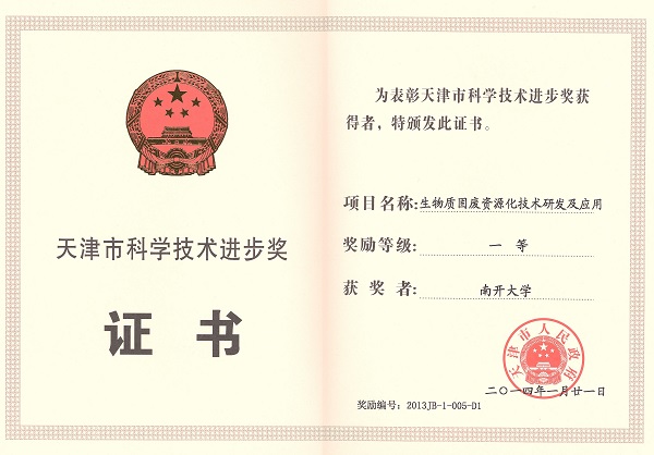 天津市科学技术进步一等奖