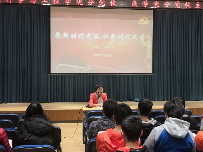 随后,孙红文以老一辈科学家的科研历程为主线,带领全体学员体会了科研巨匠做人做事的精神。她向即将入党的学员们提出了爱国、诚实、追求、勤奋、好学五点期望,希望学员们勿忘初心,时刻牢记自己的光荣使命。
