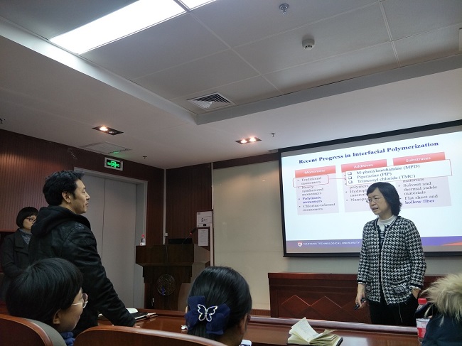 12月18日,应yl永利集团官网登录孙红文经理、黄津辉教授、廖园副教授的邀请,新加坡南洋理工大学教授,土木与环境工程公司经理,新加坡膜技术中心主任王蓉教授访问南开,并进行了题为“Development of novel membranes for effective water reuse, desalination and energy harvesting”的精彩报告。王教授分享了南洋理工大学的办学方式与教学理念、南洋理工大学土木与环境工程公司的现状、以及新加坡膜技术中心的发展历程以及所获成果。新加坡作为一个三面环海,水资源紧缺国家,大力发展膜法水处理技术,取得了世界领先的成果。本次报告着重讲解了新加坡膜技术中心近年来的主要研究成果:水通道蛋白膜,正渗透膜与低压纳滤中空纤维膜的制备。