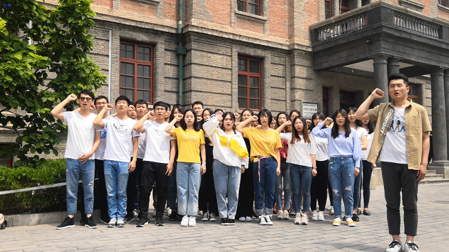 参观结束后,在2018级硕士生环工专硕党支部书记房德职带领下,所有同学进行“青春万岁,强国有我”的五四宣誓接力,掷地有声的誓言,唤起了大家爱国之心与报国之情,坚定了同学们将青春之小我融入国家之大我的决心。宣誓结束后,房德职带领同学们回顾了青年人在五四运动中起到的重要作用,五四运动正是青年力量的迸发,房德职表示:“在这个关键的时间节点回望历史,是拥抱未来最好的姿态,北大红楼中复原的一个个场景,向我们传达着那些热血青年当年的壮志豪情和自强不息的精神气韵,百年前的青年持爱国之心、行报国之志,百年后的我辈青年更要保持爱国爱党之心,勇担时代大任,做新时代‘公能’兼备的新时代优秀青年。”党员和团员们备受鼓舞,纷纷表示作为新时代青年,作为南开学子,应该在中华大地上,让爱国奋斗精神薪火相传,做到不忘初心、牢记使命、唯求真实、继往开来。