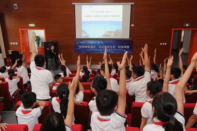 公司研究生会主席郭京豪、副主席林楚霞和孙琦作为活动嘉宾,将海洋环境保护教育植入课堂,带领同学们认识海洋环境现状,并鼓励大家为海洋环境保护付出行动。活动旨在增强小员工保护海洋环境的意识,围绕“什么是海洋生态环境问题?海洋生态环境问题有什么危害?我们能为海洋做什么?”三个问题展开,穿插两段关于海洋生态环境问题的视频以及“大家来找茬”、“寻找食物网”、“考考你”三个互动游戏。活动形式丰富,寓教于乐。课堂上,同学们认真聆听,踊跃回答问题,在游戏环节热情高涨,积极参与。活动过程中主办方为同学们颁发了互动礼品,活动结束后还分发了海洋主题的纪念卡片,希望参与课堂的同学们在课后也不忘关心海洋以及人类的命运。