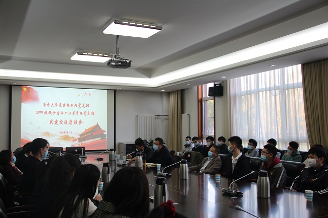 支部共建,优势互补。首先,基建规划处党支部副书记郭强介绍了支部中支委的人员组成和日常职务分配,随后向大家介绍了支部日常活动的开展情况并对日后两支部的共建活动提出建议。随后,2019级硕士生环工环管资环党支部书记王宇佳向大家汇报了本支部的人员组成、日常工作、特色活动、发展优势和目前面临的问题等。