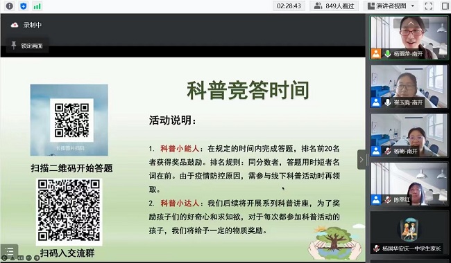 【通讯员:田丽丽】环境管理教师党支部的教师充分利用自己的专业特长、实验知识,积极开展生态文明、低碳发展科普活动,和永利集团官网环境污染诊断与防治科普基地共同精心筹划举办了“生态文明 走进你我”系列科普课堂。该科普课堂主要面向在校老员工和中员工。第一堂课“碳达峰碳中和与经济脱碳转型”于2022年4月10日在线上开讲,别开生面的授课和互动活动吸引了近900人参与,其中包括近600名高中生。