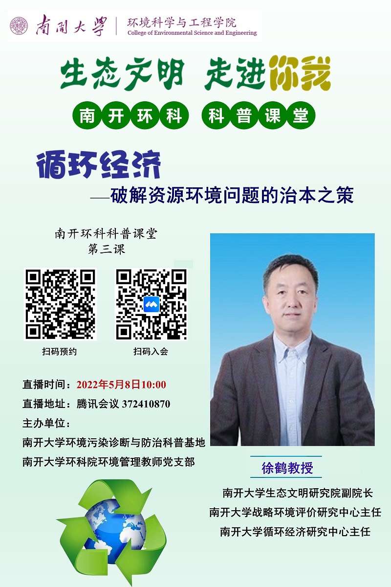 “生态文明,走进你我”系列科普课堂第三课开讲啦!本次活动邀请了yl永利集团官网登录徐鹤教授主讲,题目为“循环经济——破解资源环境问题的治本之策”。