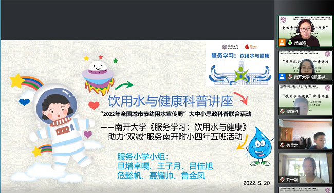 (通讯员 鲁金凤)为深入贯彻习近平总书记关于在大中小学循序渐进、螺旋上升地开设思政课重要指示精神,并丰富疫情期间小员工的居家线上学习内容,永利集团官网《服务学习:饮用水与健康》课程与永利集团官网附属小学四年五班,于5月20日在2022年全国城市节约用水宣传周之际,共同策划组织了“全国城市节约用水宣传周思政科普联合活动”。该活动的主题为“节约用水,健康饮水”,活动形式为服务学习式思政、科普。