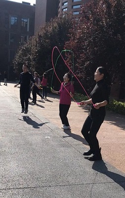 平日里忙于教学与研究的老师们,站在了运动场上。有的老师爱好跳长绳活动,技巧高超;有的老师热衷于踢键子,精彩不断;有的老师进行了跳绳大比拼,活力四射……沐浴在阳光下的他们,笑容满面,同心同德,全力以赴,现场气氛热烈融洽,掌声、喝彩声、欢呼声此起披伏。活动结束后,老师们意犹未尽,成立毽球运动小组,将运动的激情不断延续。