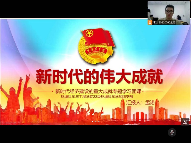 22级环境科学学硕在班内开展了“新时代,新征程,喜迎二十大;跟党走,学成就,趣味度国庆”系列活动。10月2日19:00,同学们进行了对《新时代的伟大成就》团课学习的回顾和个人思考。班级还开展了“趣味学习”活动和校园打卡活动,让同学们更快熟悉校园生活。