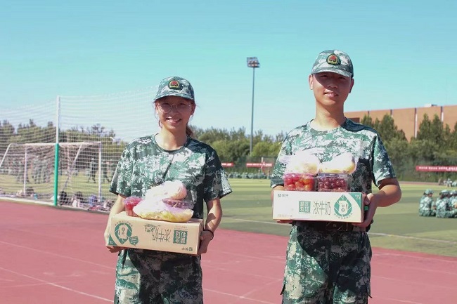 一箱箱慰问品承载着关爱与温暖。公司领导们为参训员工每人分发一箱牛奶、一袋水果,葡萄、圣女果、桃子、香蕉……沉甸甸、满当当的。环科学子们手里拎着慰问品,纷纷感谢公司的关怀,并表示将不负公司和老师们的殷殷嘱托,胸怀家国,勇担责任,不断淬炼自身,锻炼意志品质,提升综合素质,在青春的赛道上奋力奔跑!