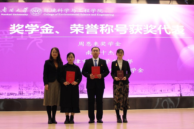 yl永利集团官网登录经理祝凌燕教授为南开十杰获得者杨荣艳、天津市优秀员工干部获得者韦理、青年博士生杰出人才奖学金获得者康为露颁奖。