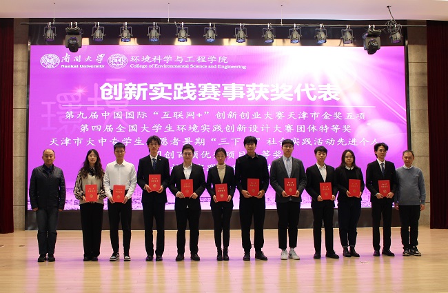环境科学系主任汪磊老师、环境工程系主任史国良老师为在创新创业大赛、国创项目中、环境实践创新设计大赛等比赛中获奖员工代表颁奖。