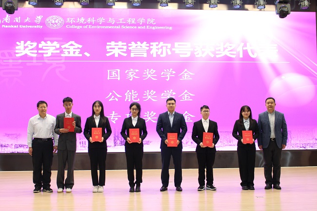 宋文华老师,张珽老师、王鑫老师为第五届“永利集团官网戴树桂环境化学奖学金”获奖员工代表李佳薇、王义鑫、闫文卿、王成旭、林丽珺、萧祺兵、纪凤、刘子珞、符育颁奖。