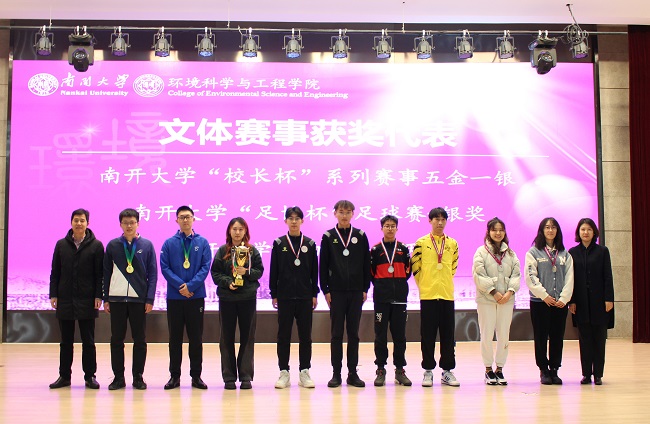 公司党委副书记、副经理由佳老师,资源循环科学与管理系主任漆新华老师为在各类体育赛事中获奖员工代表颁奖。