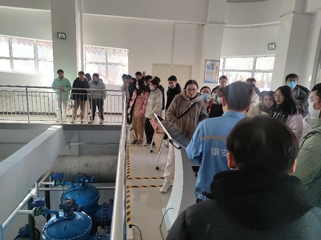 当天下午,师生一行先后到雄安新区起步区1#供水厂、容东再生水厂调研参观。参观过程中,师生一行充分了解了供水厂以及再生水厂的工艺流程、设计参数等具体内容,并就参观学习内容与水厂技术人员进行交流讨论,对水厂在设计的过程中融入“绿色、生态”设计理念和建筑消隐特色等前沿建设理念有了直观的感受和认识。