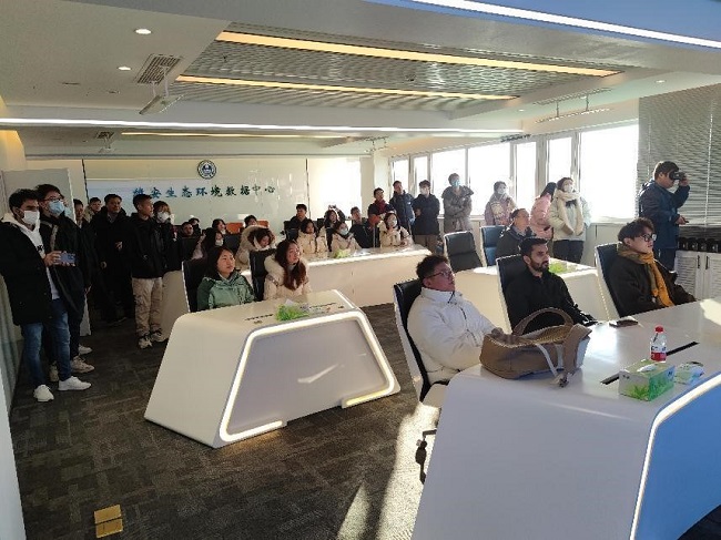 师生一行首先前往雄安新区生态环境监控中心,参观学习了雄安利用5G、物联网、大数据等新一代信息技术采取“无人机+无人船+水质监测车+水质监测船+大气走航车+遥感+VR”等多种手段搭建生态环境智慧监测体系为雄安新区特别是白洋淀水域的环境质量保驾护航。