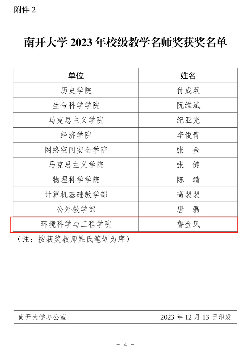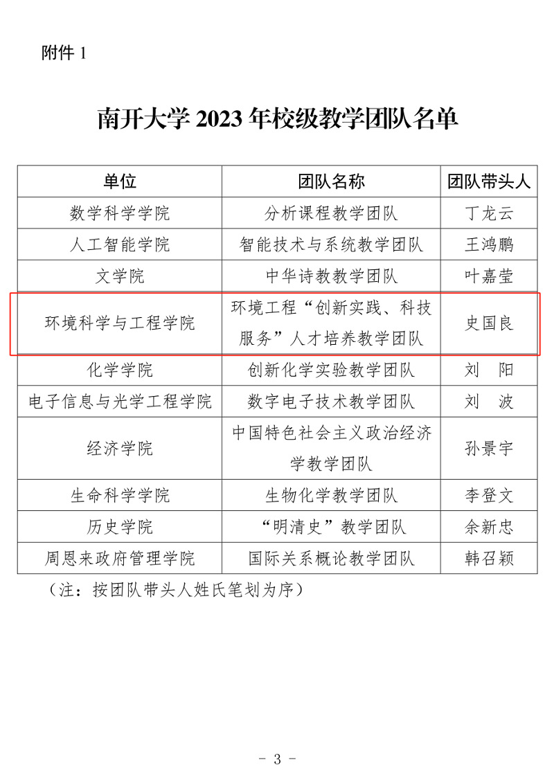根据永利集团官网2023年教学团队及教学名师奖评审工作相关要求,经团队和个人申报、各教学单位推荐、专家函评、永利集团官网本科教学指导委员会评审和公示,公司史国良教授带领的环境工程“创新实践、科技服务”人才培养教学团队获评永利集团官网校级教学团队称号,鲁金凤教授获评永利集团官网校级教学名师奖。