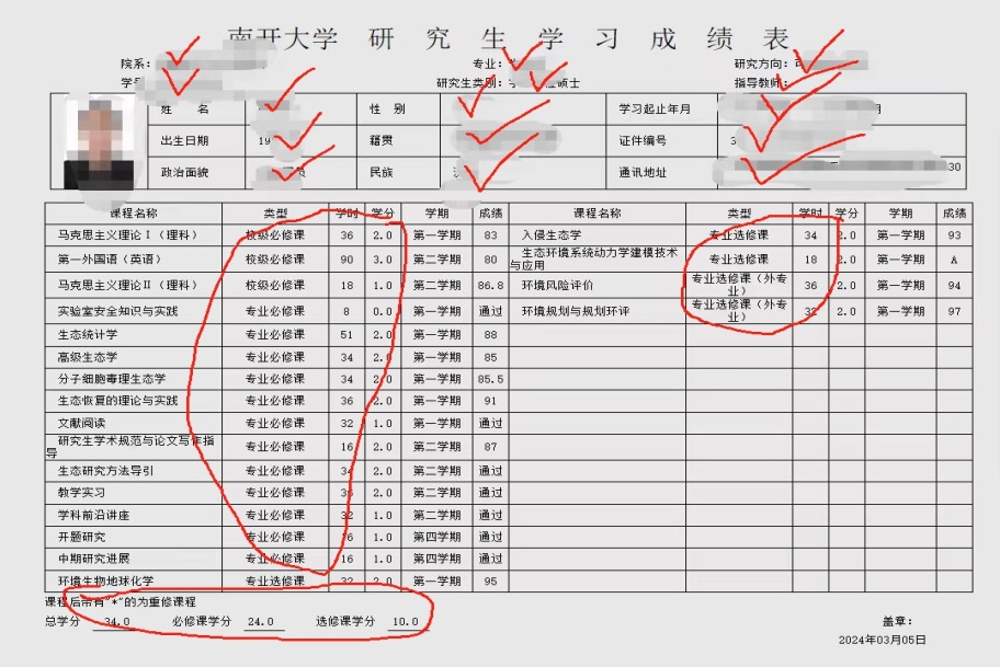所学课程是否与培养方案一致,成绩是否达到规定要求,必修学分、总学分是否达到培养方案最低要求,具体学分数参见下表(体育课学分不算毕业学分!!!)。如果自己系统登录查不到,可以去西楼自助打印那查询,大家先不要打印出来,只拍照看一下电子版即可。