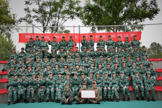 在汇演结束后,大家依依不舍的与指导员和连长合影留念,在这短暂的军训时光里,同学们获得了成长和宝贵的记忆,或许途中会喊苦喊累,但当真正结束时,心中却会闪过一丝茫然。