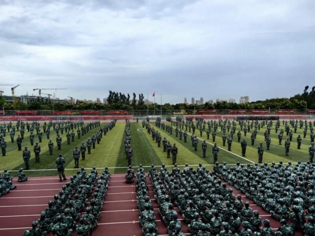 今天上午,在文科操场举行了军训汇演,各个连队展现了自己的卓越风采,各种精彩的演出让人不禁拍手称赞,四连的同学们认真观看。