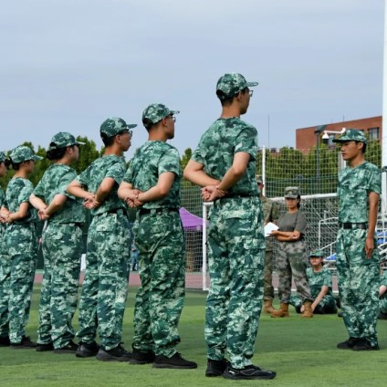 今天上午全院新生进行了队列和格斗术的练习,并于下午进行成果考核。绿茵场上迷彩军服,方队整齐步伐划一,拳法有力腿法到位。军训训的是体魄,更是这七十九年来、这几千年来传下的精神。