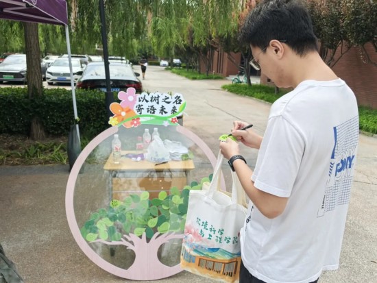 还有一些同学来到许愿树前,认真填写自己对未来生活的美好愿景,那一张张心愿卡仿佛承载着无数的梦想与希望。