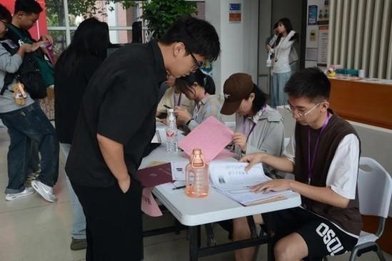 领完大礼包后,同学们来到拍照留念处。在这里,大家留下了初入校园的美好瞬间,照片现场洗出,为新生们定格了这一珍贵时刻。很多同学积极参与其中,并在新同学报道的大广告牌上郑重签字,一笔一划都饱含着对新阶段的期待与憧憬。