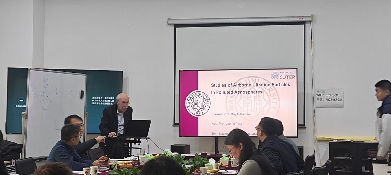 (通讯员魏文迪)11月7日,永利集团官网城市交通污染防治研究中心举办了一场主题为“Studies of Airborne Ultrafine Particles in Polluted Atmospheres”的学术会议,会议特别邀请到英国伯明翰大学著名环境科学家、国际知名的空气污染专家Roy M. Harrison教授,带来了精彩的主题报告,为与会人员提供了宝贵的研究视角和深入见解。