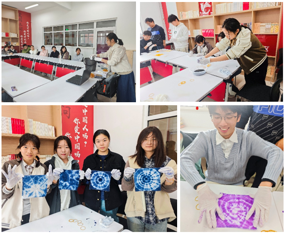 活动总结:本次活动通过理论讲解、读书沙龙和扎染手工三个环节,帮助同学们从不同角度了解情绪管理的重要性,并通过实际操作提升了心理调节能力。活动结束后,同学们对扎染作品进行了展示,并表示通过此次活动不仅学到了实用的心理知识,还体验到了艺术创作的乐趣。